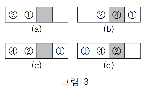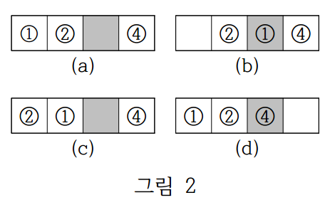 아래 그림에서 ⓘ는 지정석 표의 번호가 i인 사람을 나타낸다. 그림2의 (a), (b), (c), (d)는 위의 규칙을 만족하는 자리배치의 예이다.